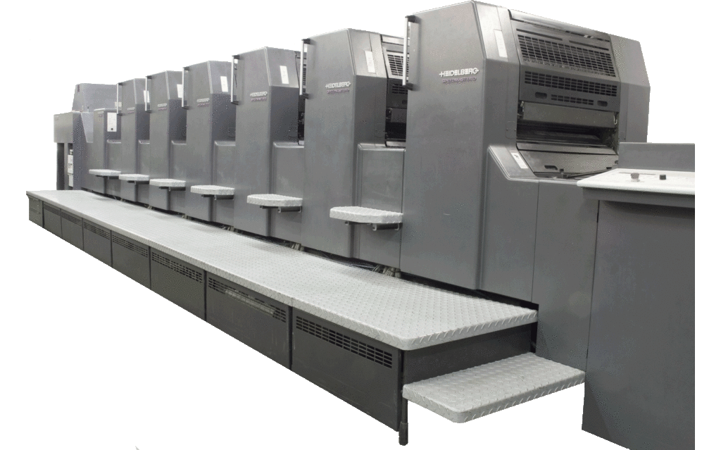 - Heidelberg SM-74 – 6 Color w/Coater ….. 20 1/4″ X 29″ (19 3/4″ X 28″ Image Size)